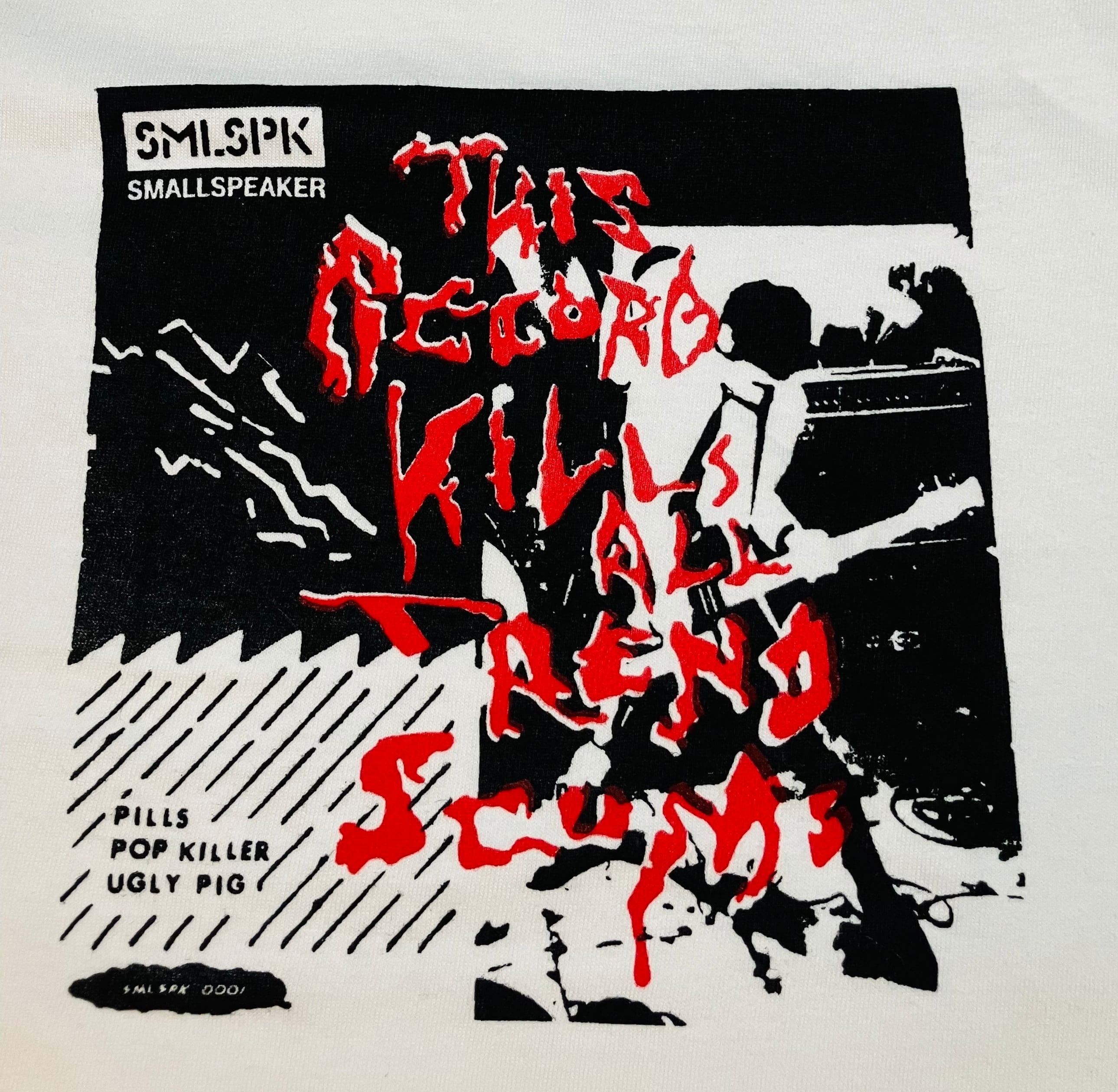 This record kills all trend scums T shirt black red L ボディーカラーホワイト